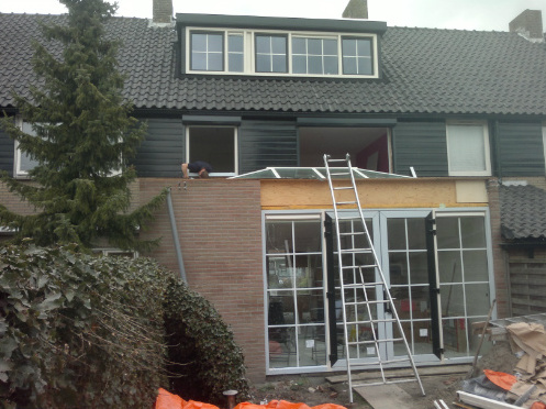 De aansluiting naar de dakpannen maken we van Ubiflex. Dit is een zeer duurzame loodvervanger. We gebruiken geïsoleerde dakplaten: de zogeheten warm-dak-constructie. De dakkapel wordt afgemaakt met een tweelaagse dakbedekking. Deze bedekking wordt op de dakkapel gebrand door een erkende dakdekker.